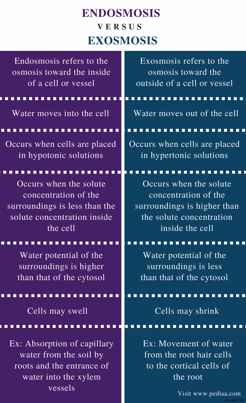 Κύρια διαφορά – Ενδόσμωση έναντι Εξώσμωσης