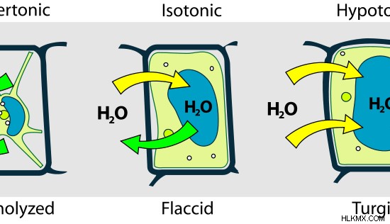 Εάν ένα κύτταρο τοποθετηθεί σε ένα ισχυρό υπερτονικό διάλυμα, το κύτταρο μπορεί να αφυδατωθεί και να πεθάνει. Αυτή η κατάσταση αναφέρεται ως πλασμόλυση. Σε ισοτονικά διαλύματα, τα κύτταρα γίνονται χαλαρά. Σε υποτονικά διαλύματα, τα κύτταρα γίνονται θολά. Εάν ένα κύτταρο τοποθετηθεί σε ισχυρό υποτονικό διάλυμα, μπορεί να σκάσει. Η κίνηση του νερού από τα τριχωτά κύτταρα της ρίζας προς τα φλοιώδη κύτταρα της ρίζας γίνεται με εξώσμωση.
