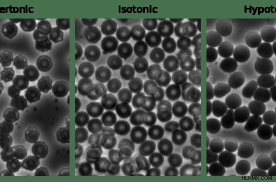 Εικόνα 1:Κύτταρα σε υπερτονικά, ισοτονικά και υποτονικά διαλύματα