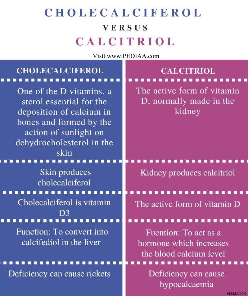 Διαφορά μεταξύ χοληκαλσιφερόλης και καλσιτριόλης